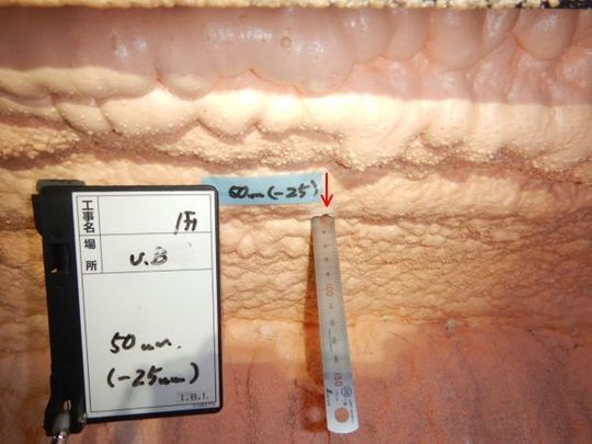 吹付断熱厚さ75㎜のはずが...! 50㎜でN.G