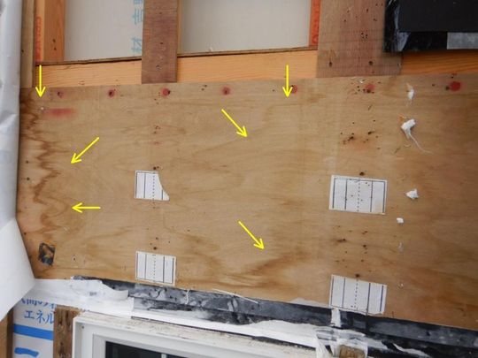 耐力壁面材の釘打ち(不備)不良多し! さらに 筋交いが無い箇所もあり N.G! 某大手ハウスメーカーの欠陥工事