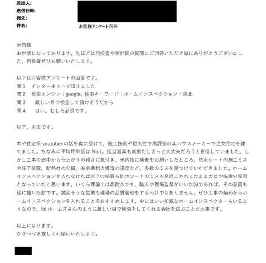 先日は遠い所、住宅検査に来て頂き、ありがとうございました。